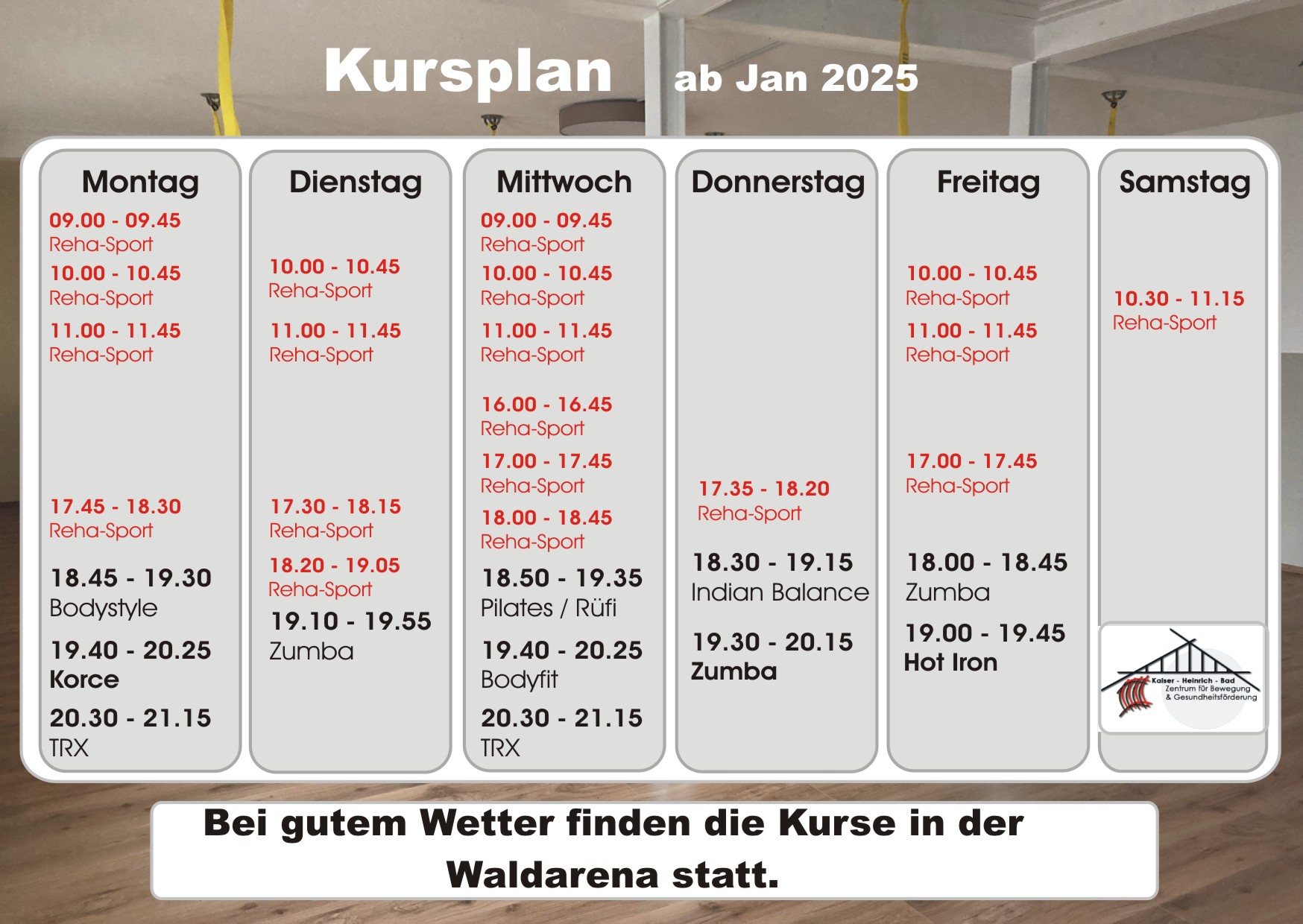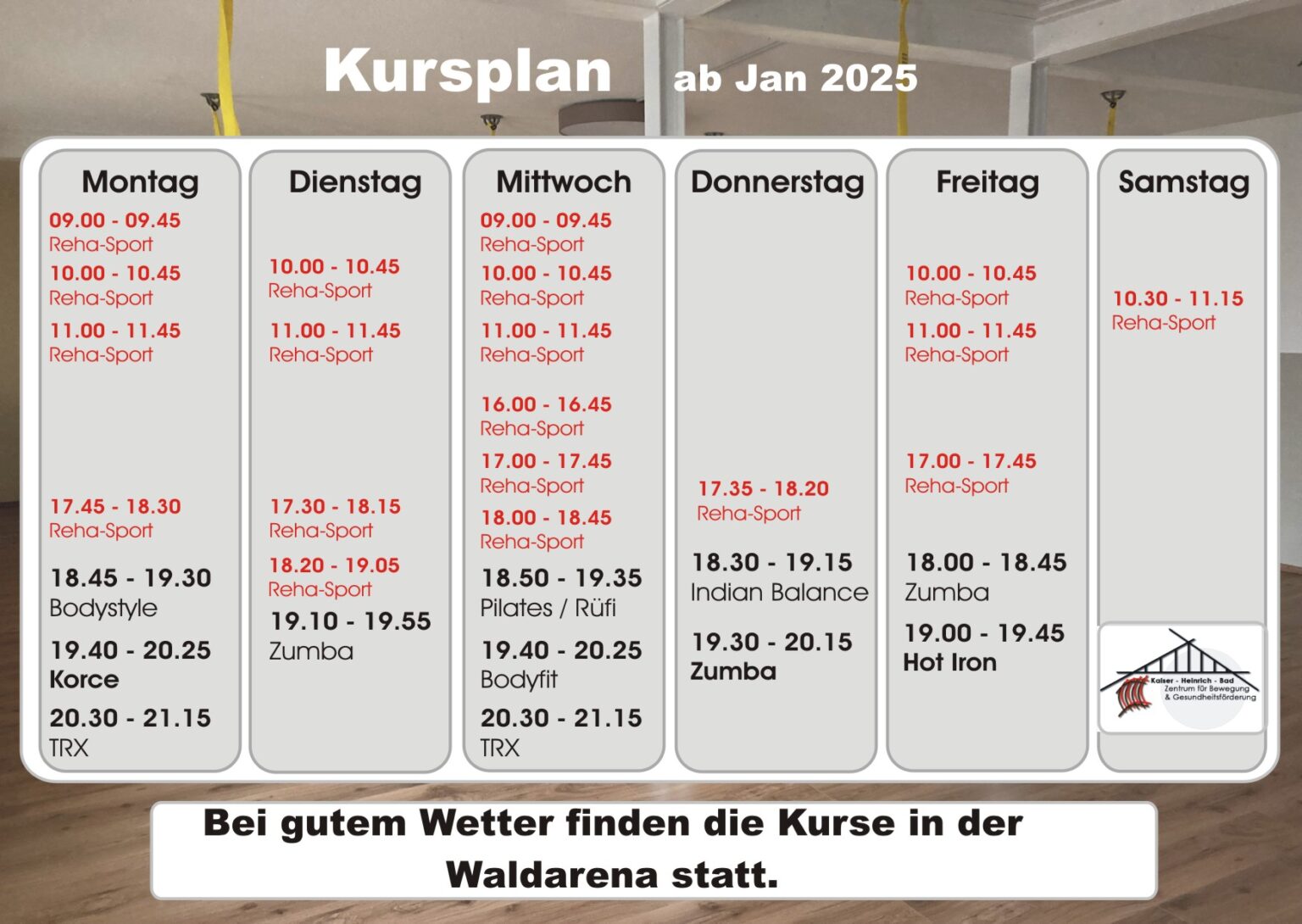 Verbessern Sie mit unserer Unterstützung Ihre Gesundheit! Gemeinsam mit Ihnen erstellen wir einen individuellen Trainingsplan für Ihre Fitness. Außerdem haben Sie die Möglichkeit an verschiedensten Kursen teilzunehmen.